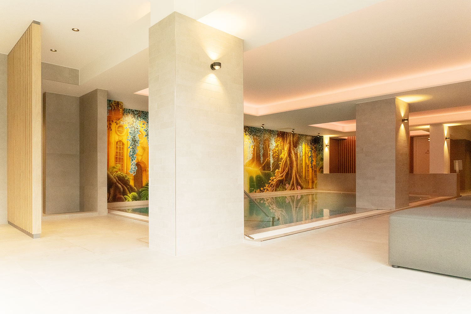 ein offener Poolbereich für Bewegung und Leichtigkeit sowie ein exklusiver Private Spa für Ruhe, Wärme und Rückzug.