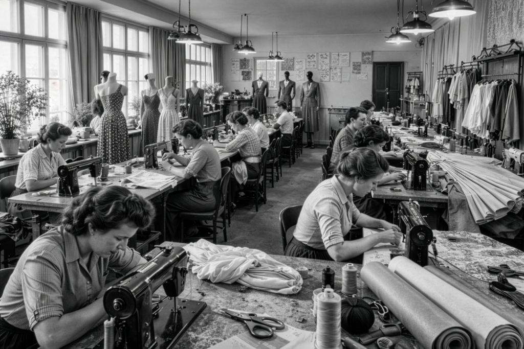 In diesem Gebäudeteil befand sich ein Modeatelier mit eigener Kleidermanufaktur der Familie Bumb. 1950 legte sie hier den Grundstein – für die Immobilie und für eine bis heute gelebte Gastgebertradition, bereits in der dritten Generation. Unter diesem Dach wurden Damenkollektionen entworfen und gefertigt – für Saarbrücken und darüber hinaus. Stoffe, Schnitte und Knöpfe prägten den Alltag dieses Hauses.